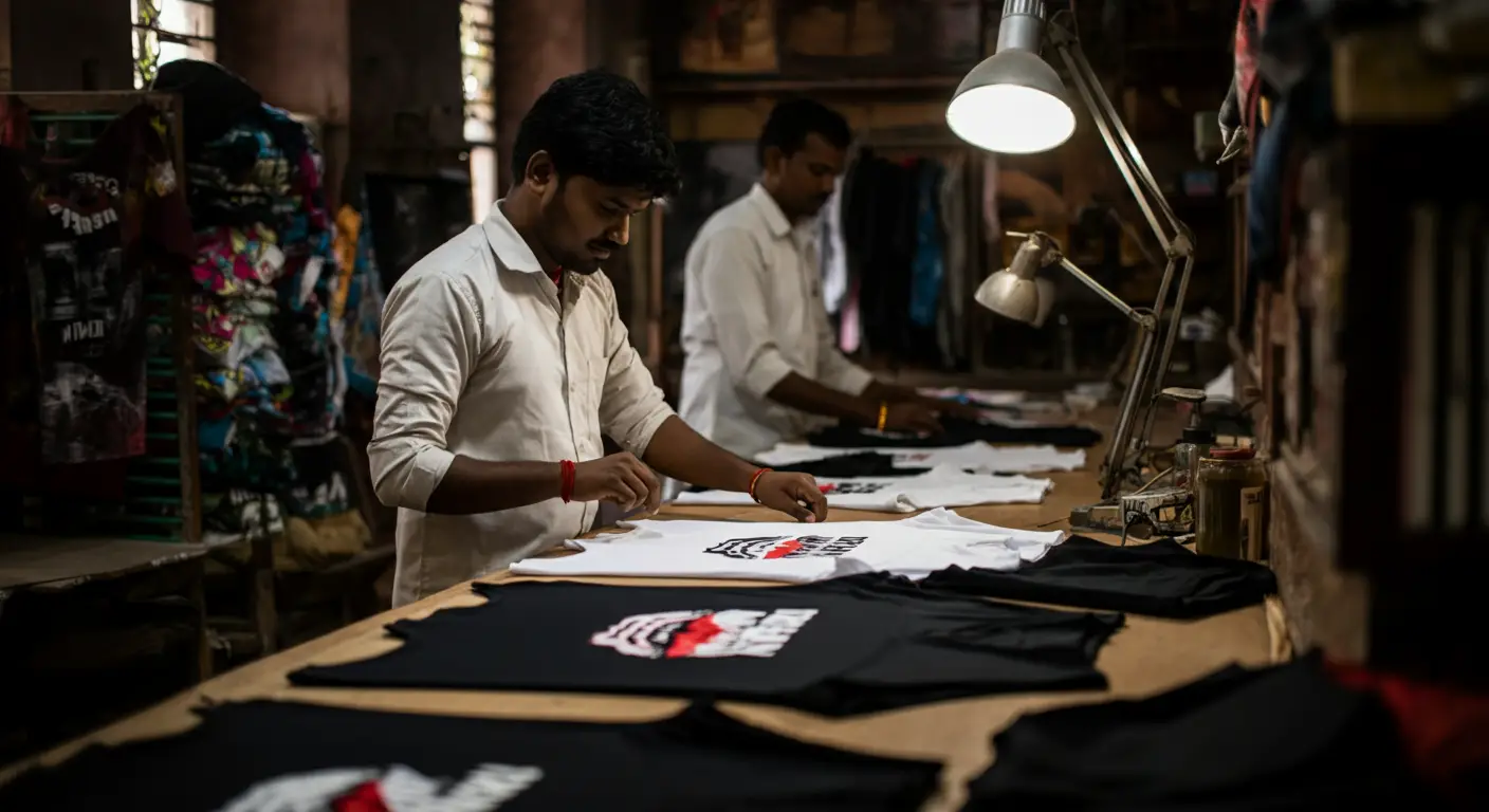 Explore a colorful showcase of our customized shirt paints, trendy t-shirts, and elegant ethnic wear representing the spirit of Indian craftsmanship.